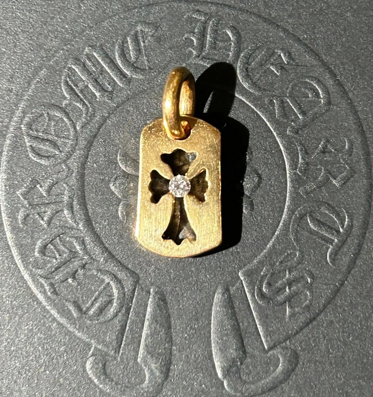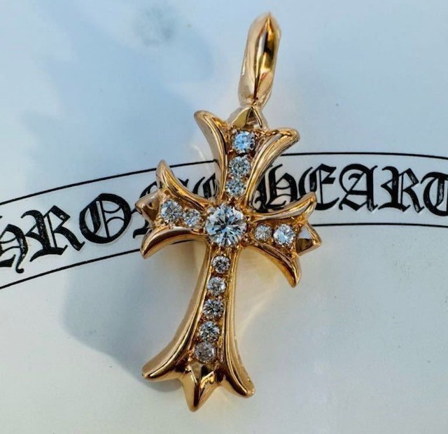【最終値下】クロムハーツ22kタイニーフィリグリークロスチャームパヴェダイヤペンダント&22kロールチェーン16inch41㎝セット国内インボイス原本